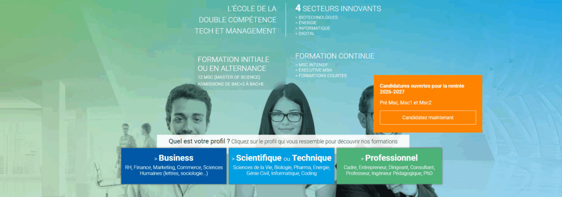 IonisSTM, l'école de la double compétence technologique et managériale propose à ses étudiants des MSc en Informatique, Biologie & Energie.